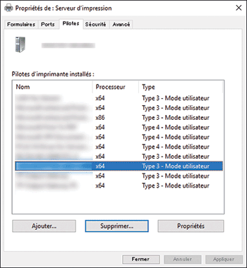 Supprimer un pilote d'impression