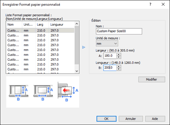 Sélectionnez l'option dans laquelle vous souhaitez enregistrer le format personnalisé dans « Liste Format papier personnalisé : ».