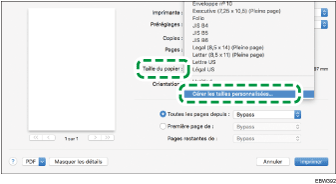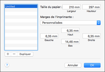 Dans OS X ou macOS, il n'est pas nécessaire d'enregistrer le format personnalisé au préalable, étant donné que vous pouvez le spécifier et l'enregistrer sur l'écran Paramètres de l'imprimante.