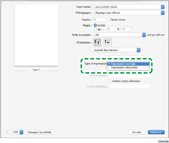 Sélectionnez [Impression sécurisée] dans "[Type d'impression ].