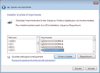 Installer le pilote sous Windows 7 ou Windows Server 2008 R2