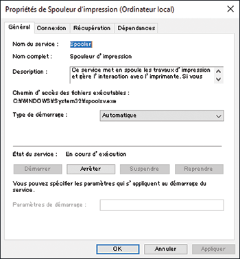 Revenez à l'écran « Service » ou « Service (Local) » puis double-cliquez sur [Spouleur d'impression].