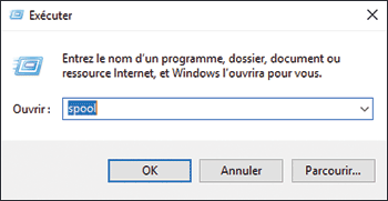 Sur l'écran « Exécuter », saisissez [spool], puis cliquez sur [OK].