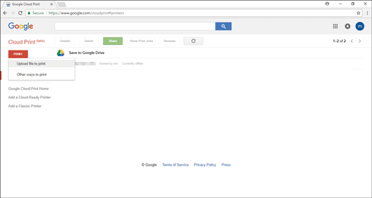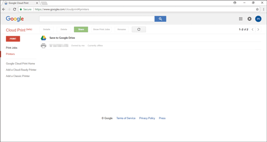 Affichez le site Web pour la gestion de Google Cloud Print (https://www.google.com/cloudprint#printers).