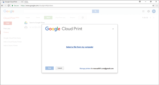 Sélectionnez l'appareil dans la liste des imprimantes affichée sous « Google Cloud Print ».