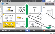 Les fonctions de base utilisées fréquemment s'affichent avec de grosses touches. Faites défiler l'écran pour afficher les touches utilisées pour configurer les fonctions de finition ou de modification.