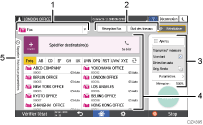 Basculez le type de destinataire entre [Fax] (y compris IP-Fax) et [Fax Internet]. Les éléments affichés dans le carnet d'adresses et l'écran de saisie du destinataire à des fins de saisie manuelle changent également lorsque vous changez de type de destinataire.