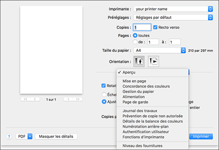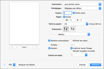 Sélectionnez l'imprimante que vous utilisez dans « Imprimante : ».