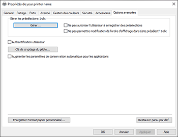 Cliquez sur l'onglet [Options avancées], puis cliquez sur [Enregistrer Format papier personnalisé...].