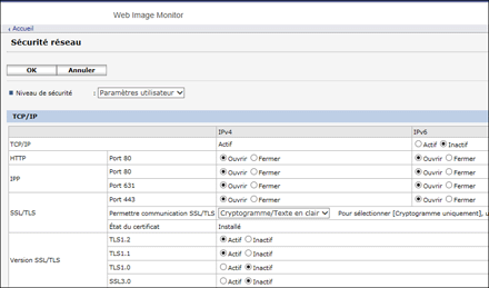 Désactiver les protocoles non utilisés depuis Web Image Monitor
