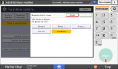 Vous pouvez configurer les paramètres de niveau de sécurité via le panneau de commande ou Web Image Monitor. Vous pouvez sélectionner les niveaux de sécurité suivants :