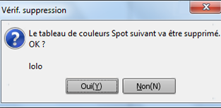 Dans l'arborescence et la liste de l'écran [Gestion tableau de couleurs spot], sélectionnez le tableau de couleurs spot à supprimer.