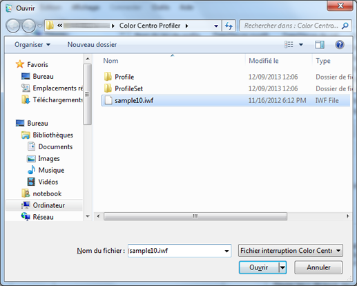 Vous pouvez reprendre un travail inachevé sur l'écran de l'Assistant Color Centro Profiler s'il est enregistré sous un fichier.