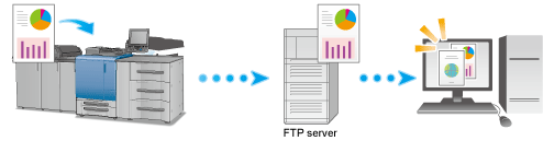 Vous pouvez envoyer des données numérisées à partir du chargeur ADF ou de la vitre d'exposition de la machine (données numérisées) au serveur FTP.