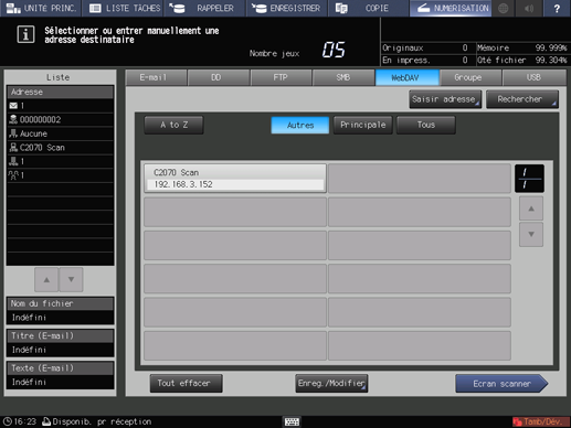 Pour sélectionner une adresse enregistrée, voir "En cas de serveur WebDAV préalablement enregistré.".