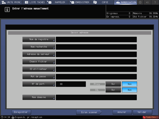 Appuyez sur [Adresse du serveur] et saisissez une adresse serveur.