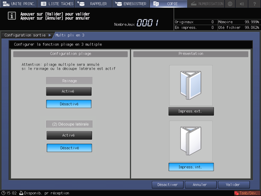 L'écran de réglage de [Multi pli en 3] s'affiche.