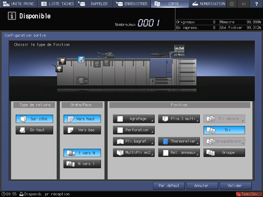 7. Appuyez sur [Valider] sur l'écran [Réglage sortie] pour revenir à l'écran [COPIER].