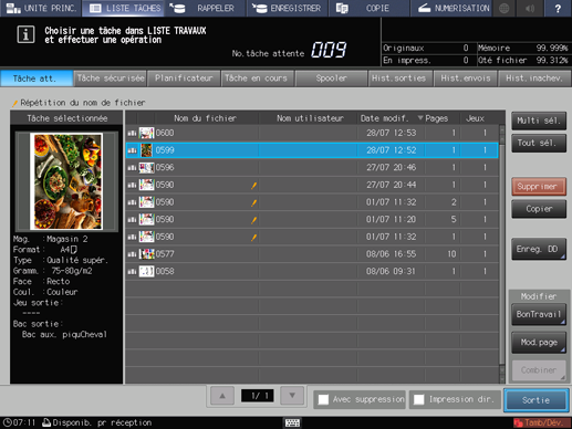 L'écran [Tâche en attente] s'affiche.