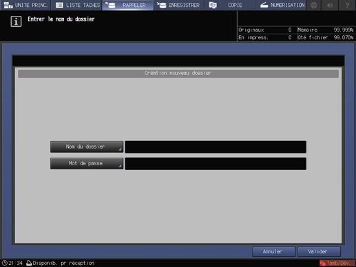 Entrez un nom de dossier et un mot de passe(facultatif), puis appuyez sur [Valider].