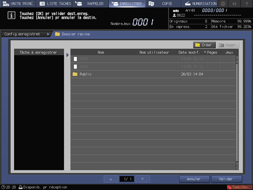 Appuyez sur [Enregistrer sur HDD] pour afficher l'écran [Dossier racine]. Sélectionnez une destination et cliquez sur [Valider].