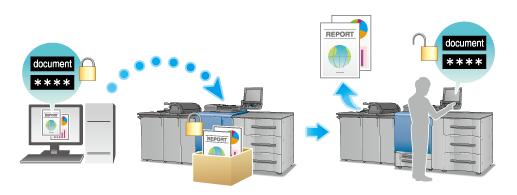 L'impression de tâches sécurisées est réalisée à l'aide du panneau de contrôle de la machine et le mot de passe de la boîte utilisateur est requis avant l'impression. Les tâches sécurisées sont automatiquement supprimées après impression.