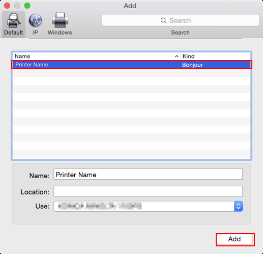 Sélectionnez le nom du modèle souhaité connecté Bonjour dans la liste [Printer Name].