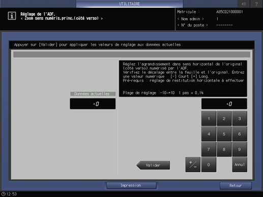 Réglage de l'agrandissement dans le sens transversal au verso lors d'une numérisation dans le chargeur ADF.