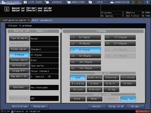 Sélectionnez le grammage applicable dans le menu [Grammage] sur le volet droit de l'écran.