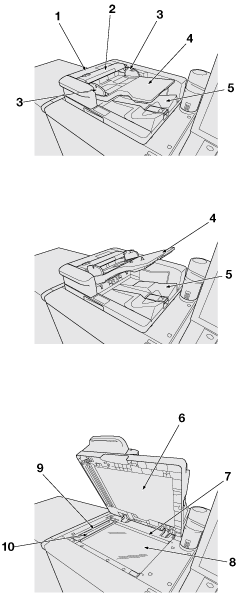 10 | Vitre rainurée de numérisation | Numérise les images des originaux en mémoire à l'aide du chargeur ADF. |