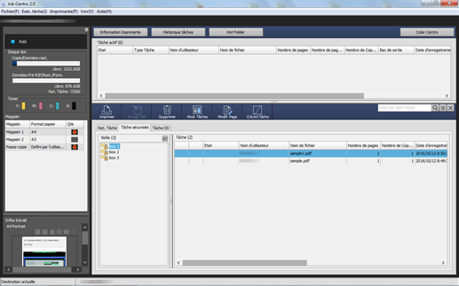 Vous pouvez imprimer une tâche sécurisée à l'aide de Job Centro.