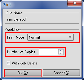 Sélectionnez [Mode d'impression], entrez [Nombre de Copies], puis cliquez sur [OK].