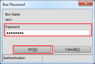 Sélectionnez une boîte utilisateur destinée à recevoir un travail d'impression envoyé par un ordinateur, entrez le mot de passe et appuyez sur [OK].