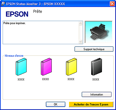 Cliquez sur le bouton EPSON StatusMonitor. La zone de dialogue EPSON StatusMonitor s'affiche.