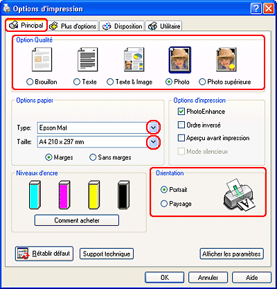 Photo supérieure pour obtenir une qualité d’impression optimale