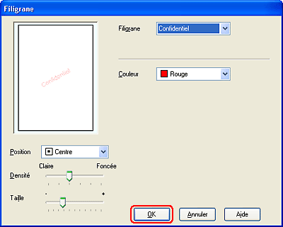 Cliquez sur OK pour fermer la fenêtre des paramètres de l'imprimante.
