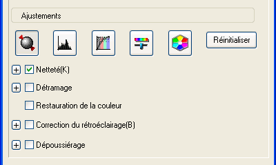 Ajustement des paramètres relatifs aux couleurs et à l'imageUne fois les images affichées en aperçu et la zone de numérisation ajustée, vous pouvez modifier la qualité de l'image, si nécessaire. Epson Scan propose une gamme de paramètres permettant d'optimiser la couleur, la netteté, le contraste et les autres aspects affectant la qualité de l'image.