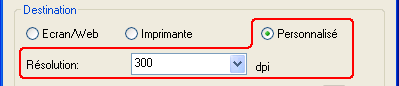 Sélection de la résolution de numérisationEn Mode loisirs, vous ne pouvez modifier la résolution que si vous sélectionnez l'option Personnalisé pour le paramètre Destination.