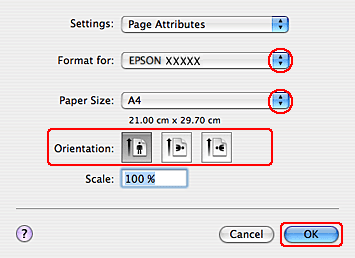 Selon l'application que vous utilisez, il est possible que vous ne puissiez pas sélectionner certains éléments de cette fenêtre. Cliquez sur Page Setup (Format d'impression) dans le menu File (Fichier) de votre application pour effectuer les réglages.