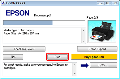pour annuler le travail d'impression en cours.