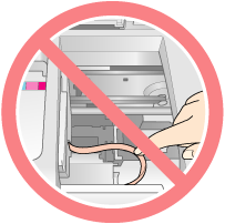 L'imprimante déplace la tête d'impression et lance le chargement du circuit de distribution d'encre. L'exécution de cette procédure nécessite environ deux minutes. Une fois le chargement en encre terminé, la tête d'impression retourne en position initiale. Le voyant d'alimentation