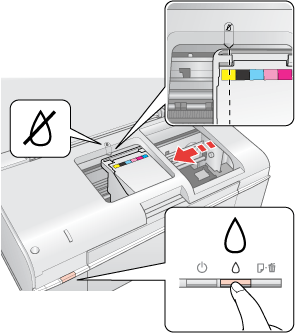 Remplacement d'une cartouche d'encre videVous pouvez remplacer les cartouches d'encre à l'aide des touches de l'imprimante ou de votre ordinateur. Pour plus de détails, veuillez vous reporter à la section adaptée ci-dessous.