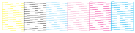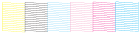 S'il manque des segments au niveau des lignes imprimées, comme indiqué ci-dessous, il est possible qu'une buse d'impression soit obstruée ou que la tête d'impression soit mal alignée.