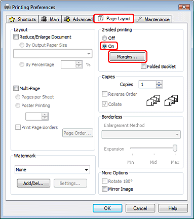 Cliquez sur Margins (Marges) pour ouvrir la fenêtre Margins (Marges).