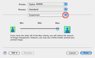 If you want to print borderless photos, select Borderless, and then click Expansion to open the Expansion window.