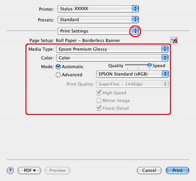 Windows: Roll Paper (Banner) Mac OS X: Roll Paper - Borderless Banner