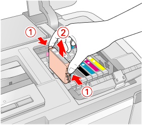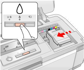 The print head moves and the ink delivery system begins to charge. This process takes about two minutes to complete. When ink charging is finished, the print head returns to its home position. The