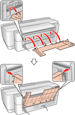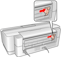 roll paper button for three seconds. The printer feeds in reverse and the paper is ejected from the rear. Press the