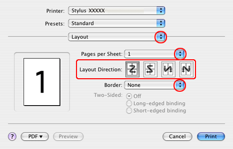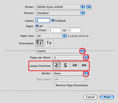 Prints multiple pages of your document on a single piece of paper. You can choose from 1, 2, 4, 6, 9, or 16.