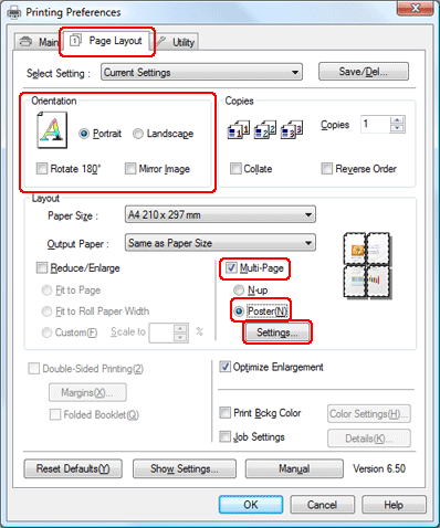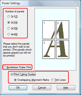 Select Borderless Poster Print if you want to make posters without cutting the margins and overlapping the panels.